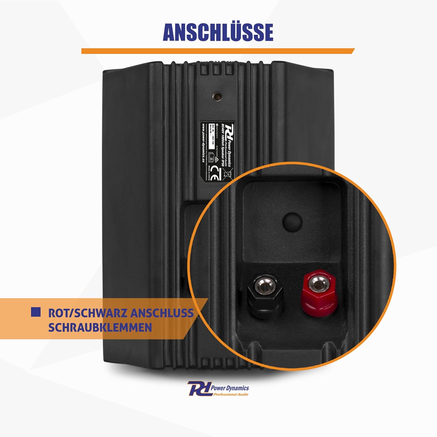 - Einfacher Anschluss: Die Klammerklemmen ermöglichen den einfachen Anschluss eines Verstärkers.