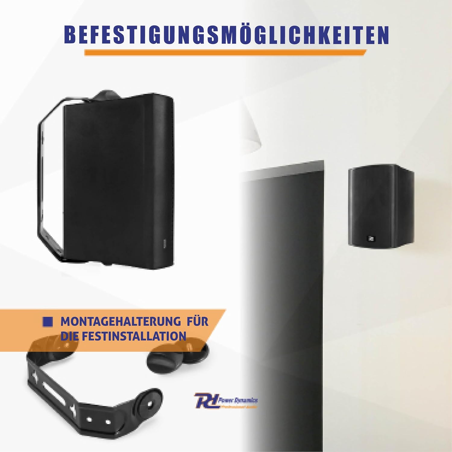 - Wand und Decke: Die Lautsprecher werden mit passenden Halterungen geliefert, die eine einfache Montage an der Wand oder Decke ermöglichen.