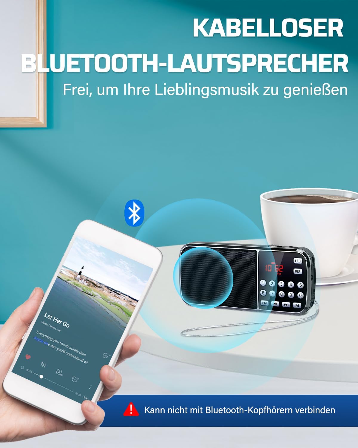 - 📻Exzellenter Empfang: Sie werden die automatische Sendersuche unseres UKW(76-108 MHz)-Digitalradio zu schätzen wissen. Per Tastendruck können Sie automatisch Sender aus dem gesamten Empfangsbereich aufspüren. Alternativ können Sie über die