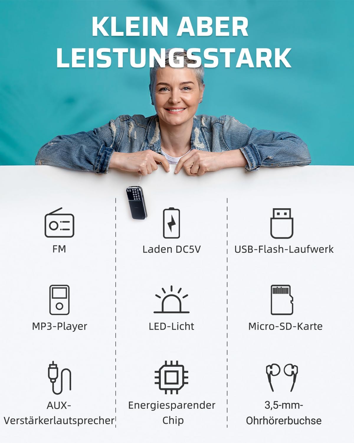 - 📻Radio Akkubetrieb: Dank 1200mAh-Akku bietet das USB Radio klein über 10 Stunden Stück. Die automatische Display-Abschaltfunktion sorgt für 50% mehr Laufzeit. Ein Piepton erinnert daran, das Radio rechtzeitig wiederaufzuladen. Das Signal ertönt