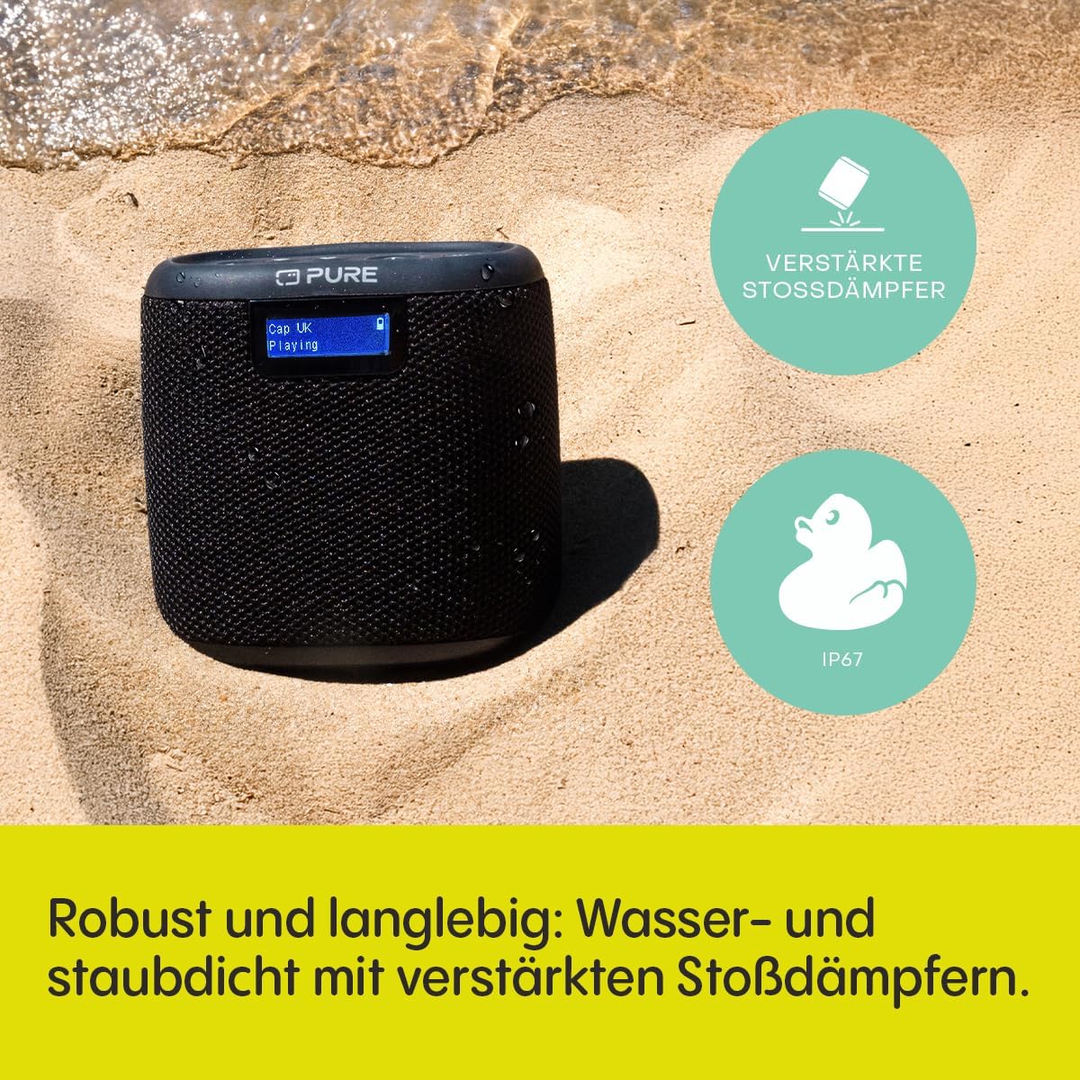 - BLUETOOTH-LAUTSPRECHER, PERFEKT FÜR OUTDOOR-ABENTEUER: Der Woodland Mini Bluetooth-Lautsprecher ist für alle deine Outdoor-Aktivitäten konzipiert. Geniesse deine Lieblingsmusik oder Podcasts mit Bluetooth 5.3, DAB+/FM und bis zu 17 Stunden Spielzeit.