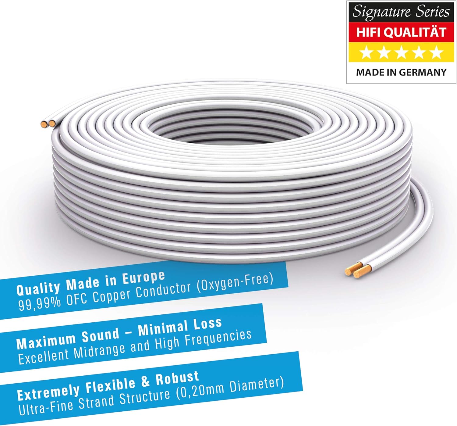 - Premium-Kabel-Querschnitt von 2x2,5mm² - sowie ultra-feine Litzen-Struktur von 0,20 Durchmesser - die ideale Kombination für minimale Verluste und maximale Klangqualität