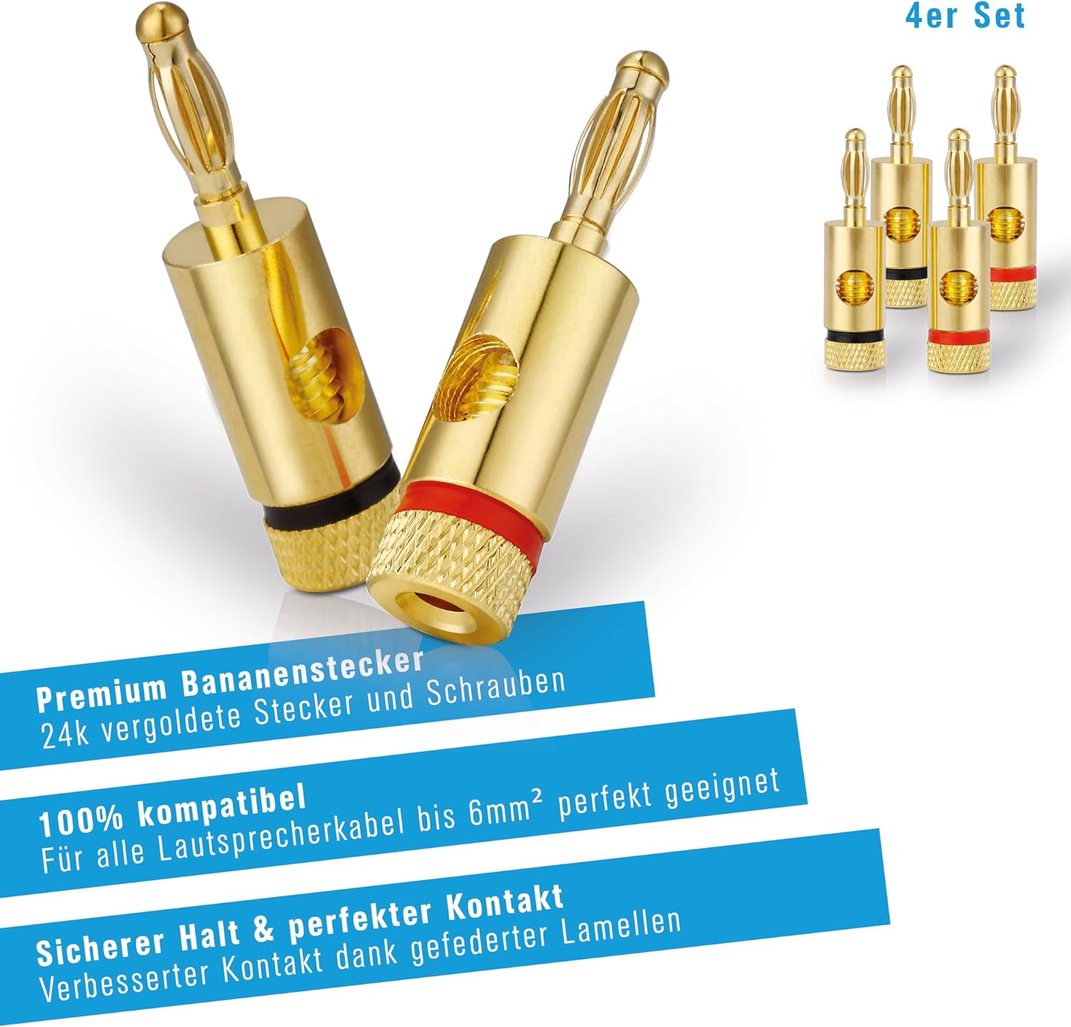 - Hifi Lautsprecherkabel - Innenleiter aus reinem Kupfer (99,99% Oxygen-free copper - Sauerstofffreies Kupfer), Set inkl. 4 Bananenstecker