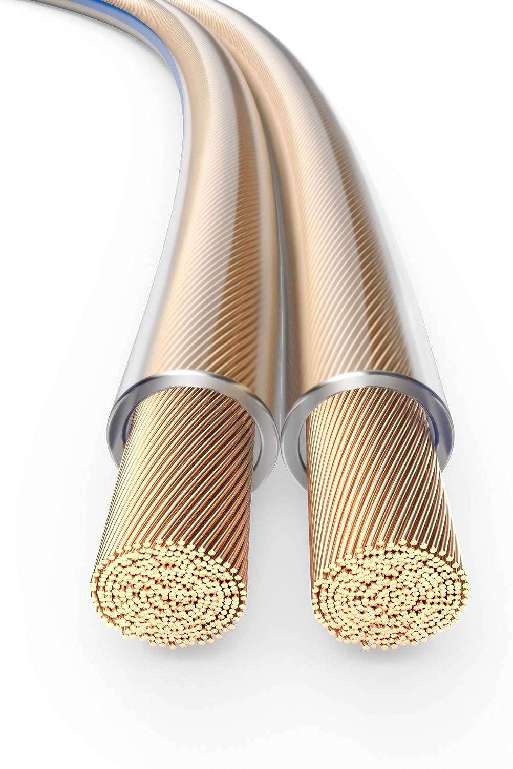 - 2 x 2,5mm² Querschnittsfläche - Litzen-Struktur 0,10 Durchmesser - eine ideale Kombination für minimale Verluste und maximale Klangqualität