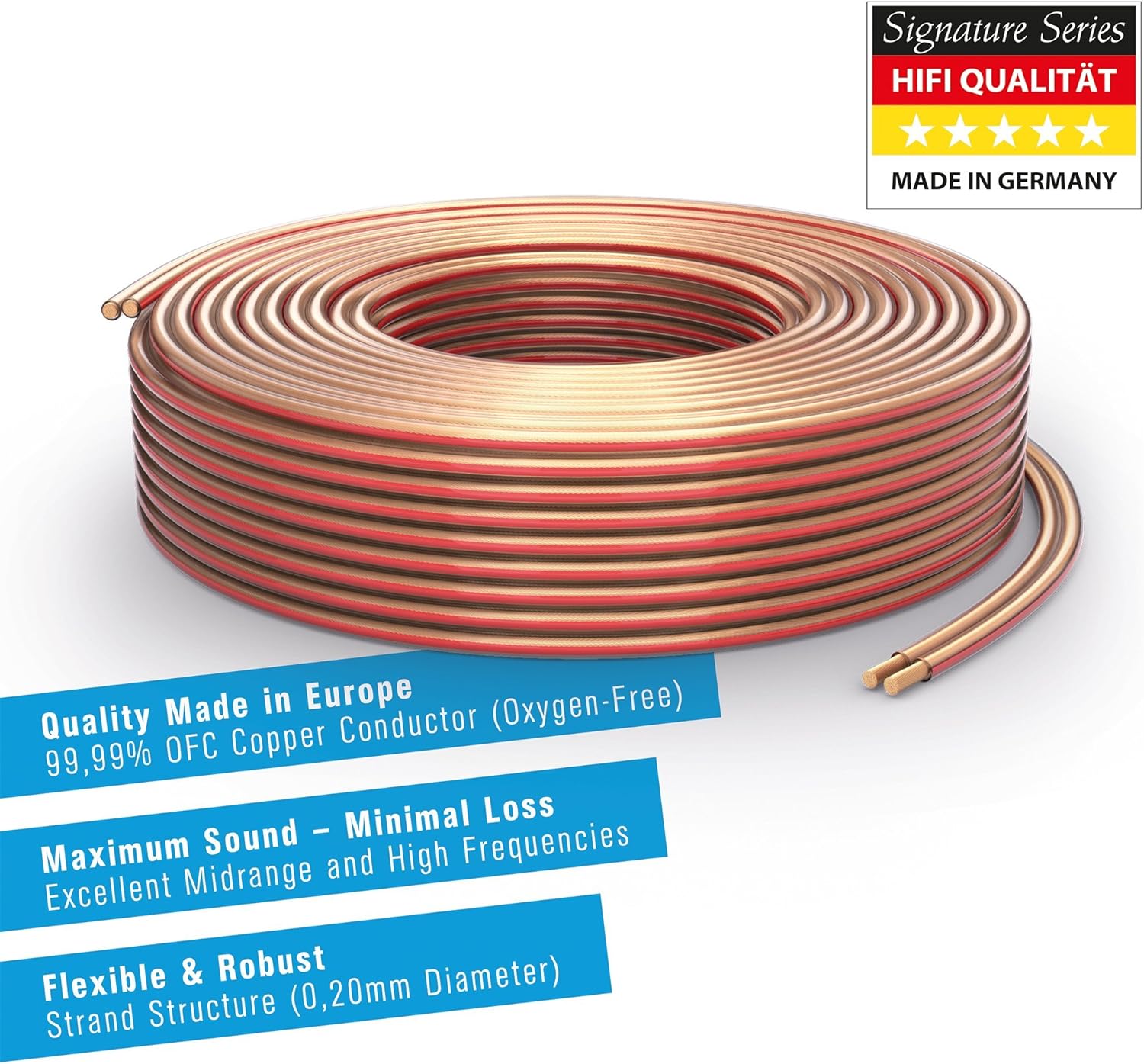 - 2 x 2,5mm² Querschnittsfläche - Litzen-Struktur 0,20 Durchmesser - eine ideale Kombination für minimale Verluste und maximale Klangqualität