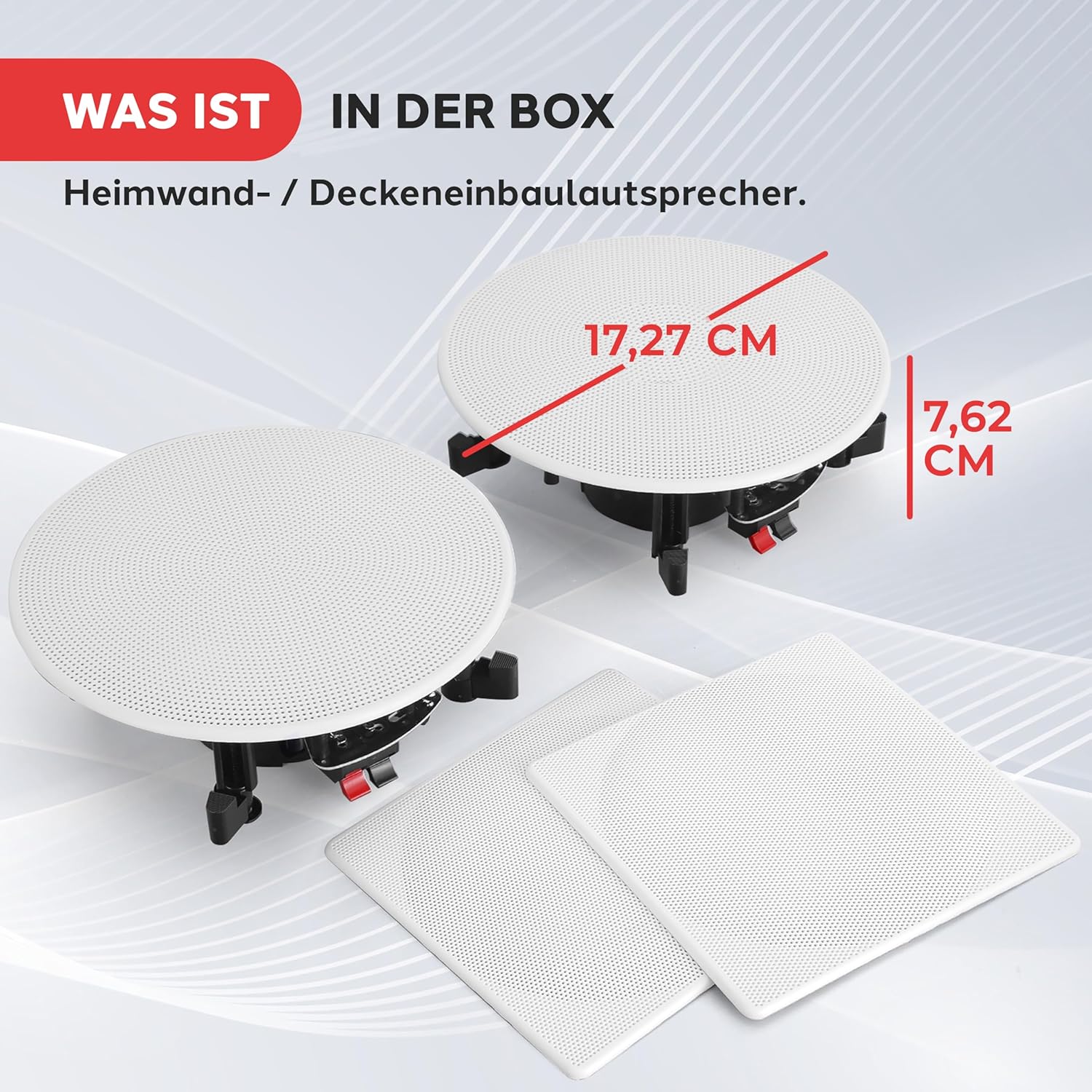 - FLUSH MOUNT DESIGN: Ein Paar Dual-Lautsprecher im bündigen Design für eine einfache und einfache Installation in der Wand / in der Decke. Das Produkt umfasst die Ausschnittsabmessungen von 6,8 Zoll im Durchmesser x 3,0 Zoll in der Tiefe und