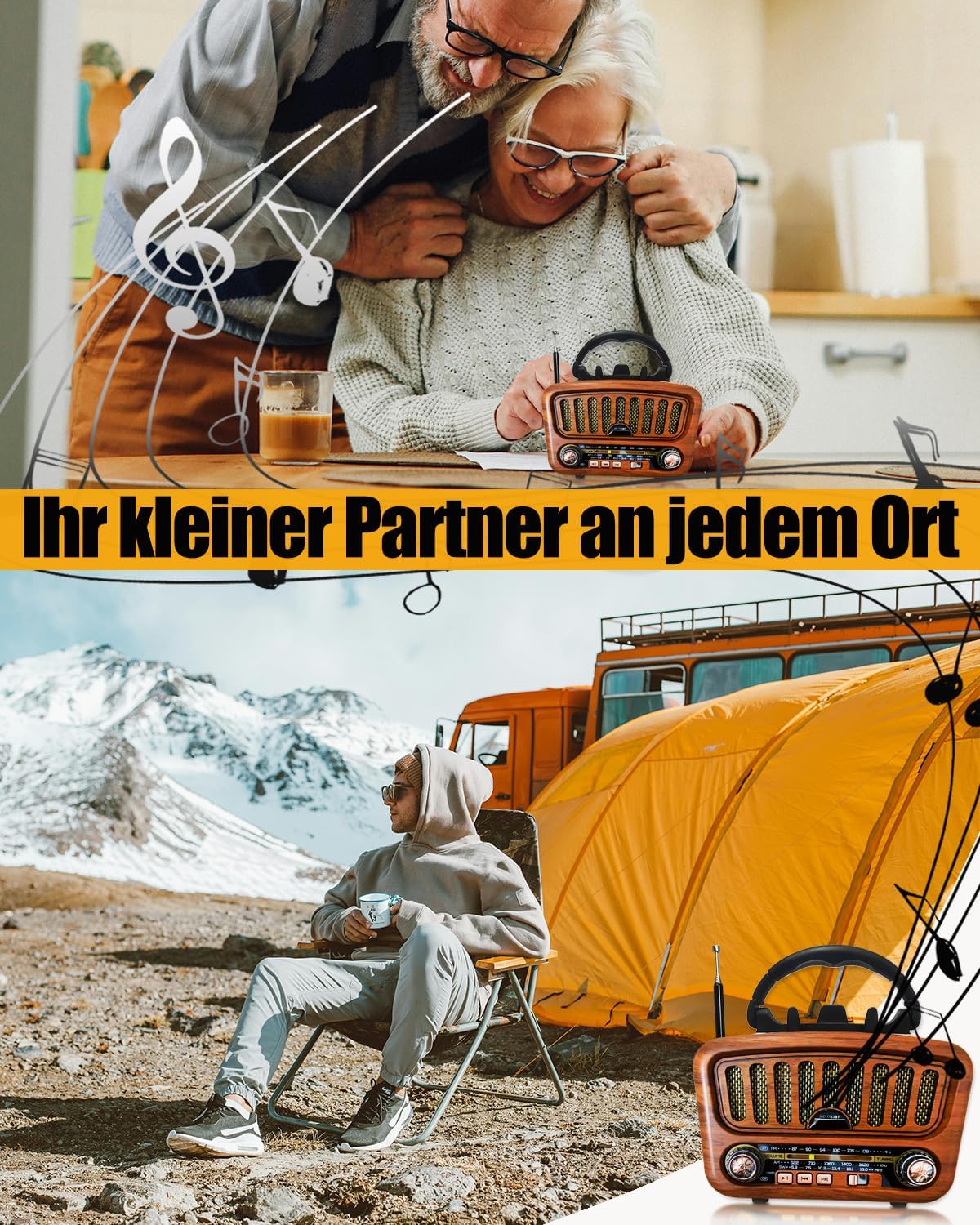- 【Exzellenter Empfang】Weiter Frequenzbereich (AM: 522-1620 KHz, FM: 87-108 MHz, SW: 5.6-22.0 MHz). Es ist nicht nur ein küchenradio, sondern auch ein retro radio klein. Multi-Band bedeutet, dass das tragbare bluetooth radio Sender aus mehreren