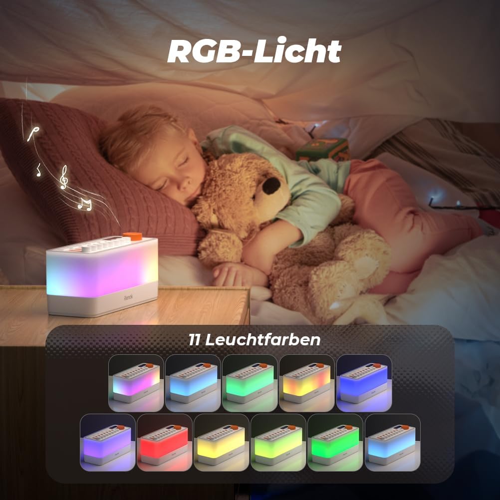 - Einschlafhilfe Musikbox: 8 beruhigende Klänge wie Regen, Meereswellen und Vogelgezwitscher. Sie können Kombinationen wie Regen- und Lagerfeuergeräusche abspielen, um Ihre eigene Naturgeräusche Track zu erstellen und Ihre Unruhe zu beruhigen