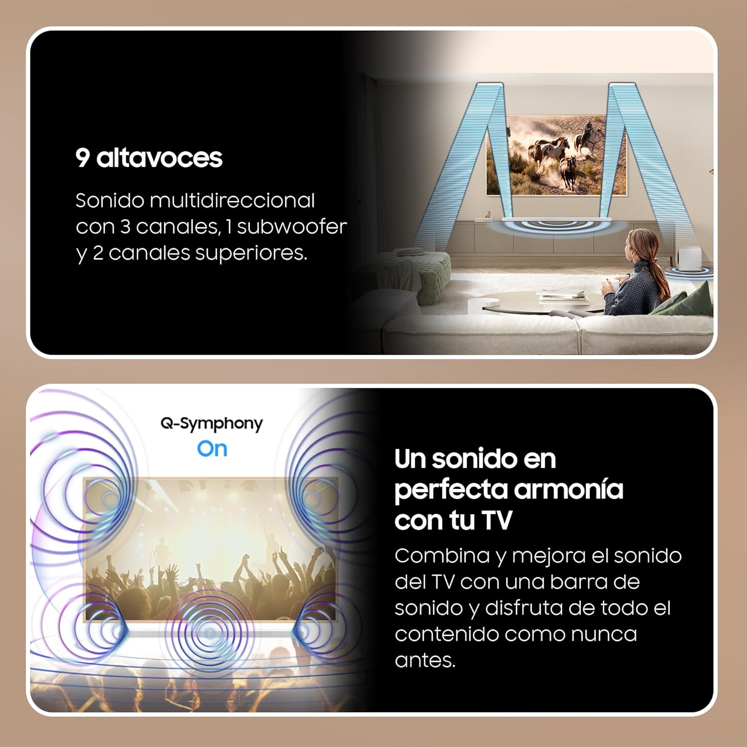 - Q-Symphony: Perfekte Harmonie zwischen Soundbar und TV-Lautsprechern, Sprachassistent: kompatibel mit Alexa und Google Assistant für eine Sprachsteuerung, Tap Sound: Übertragung von Musik von mobilen Geräten mit einer einfachen Berührung