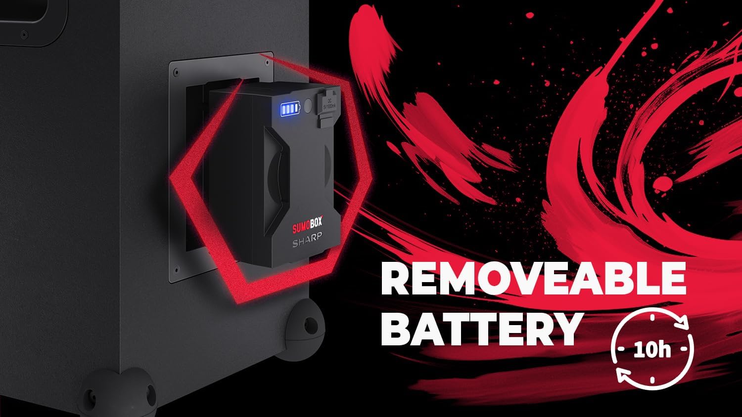 - SHARP SumoBox: Vielseitiger, tragbarer Lautsprecher, Leistungsstarkes 2.0-Kanal-Lautsprechersystem mit 120 W RMS / 105 dB über 2 x 8" Tieftöner + 2 x 2" Hochtöner