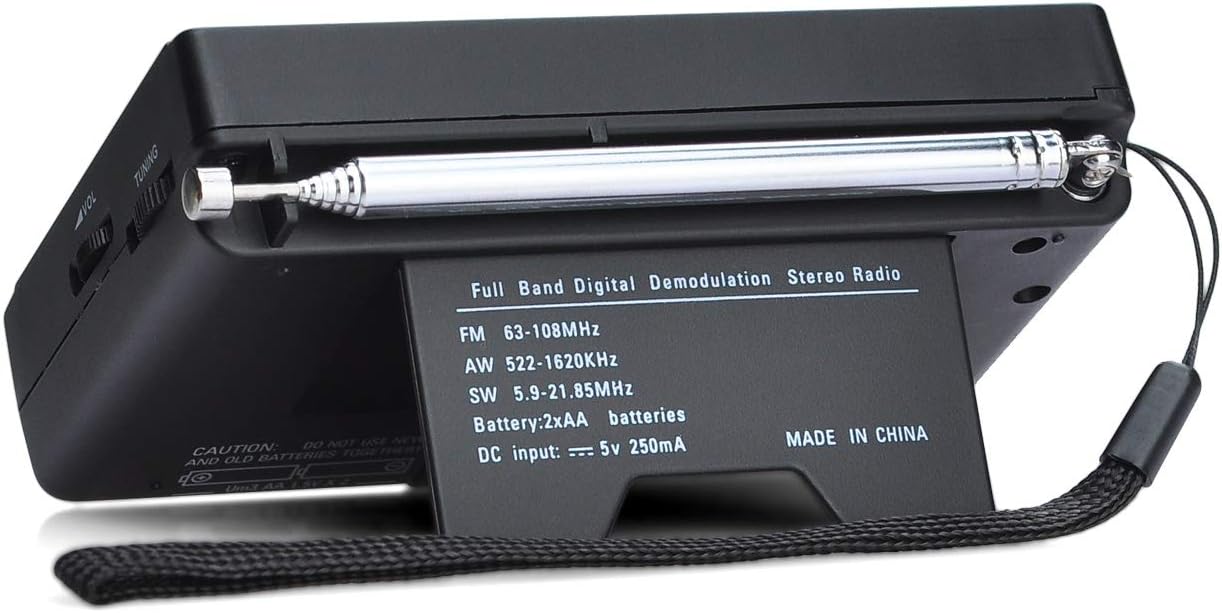 - VOLLBAND-RADIO: Das digitale Demodulationsradio verfügt über AM / FM / SW-Bänder. FM (63-108 MHz), AM (522 kHz - 1620 kHz / 520 kHz - 1710 kHz), SW 1-7 (5,90-21,85 MHz). Mehr Band für Ihre Wahl, um das Radio zu geniessen. Automatischer und manueller