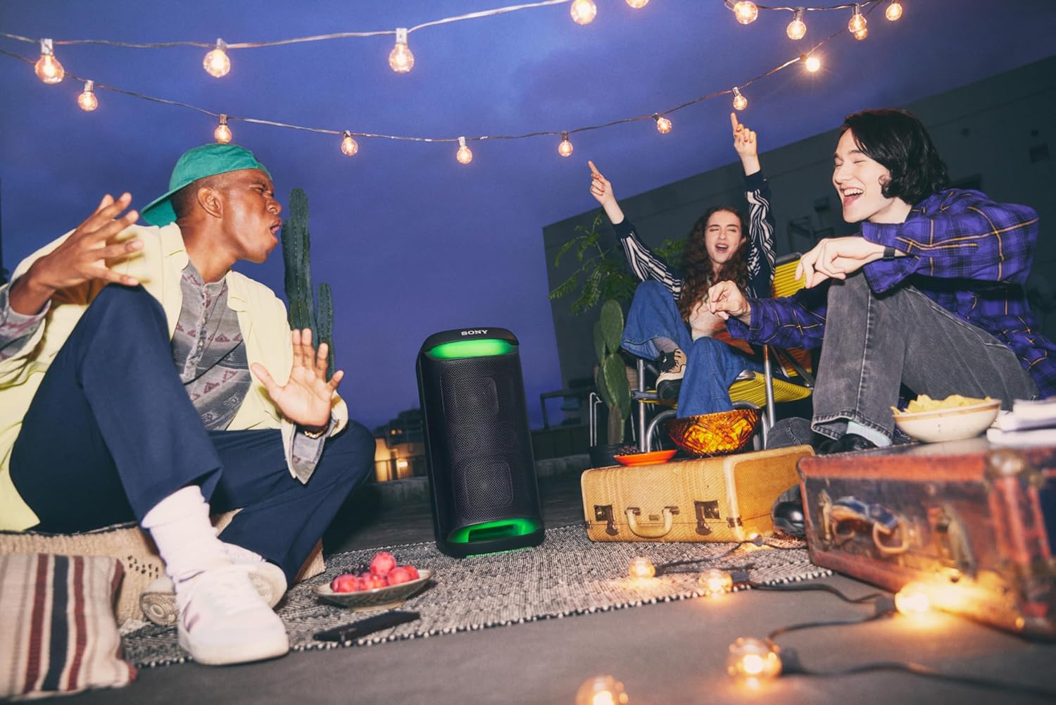 - MIT LICHTEFFEKTEN UND MEHR EINE ATMOSPHÄRE SCHAFFEN: Mehrfarbige Lichter synchronisieren sich mit der Musik und der kabellose Lautsprecher kann sofort über das intuitive Touchpanel oder die Sony | Music Center App gesteuert werden
