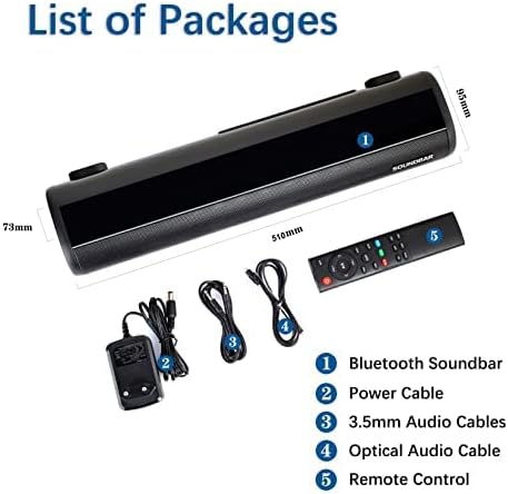 - 🎵Breite Kompatibilität: Verschiedene Hörgenüsse, intelligente Soundbars können an verschiedene Geräte angeschlossen werden, wie z. B.: Mobiltelefone, Laptops, Fernseher, Computer, Projektoren, U-Disks, Set-Top-Boxen usw.