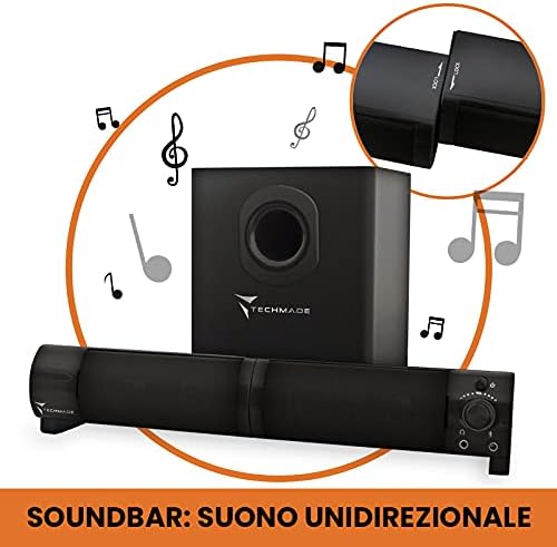 - Soundbar System. Erstellt um die richtige Atmosphäre im Raum zu schaffen, wird das Soundbar System Ihnen einen direkteren und immersiven Klang auf die richtige Brust übertragen. Diese Konfiguration wird durch die Verbindung der beiden Lautsprecher