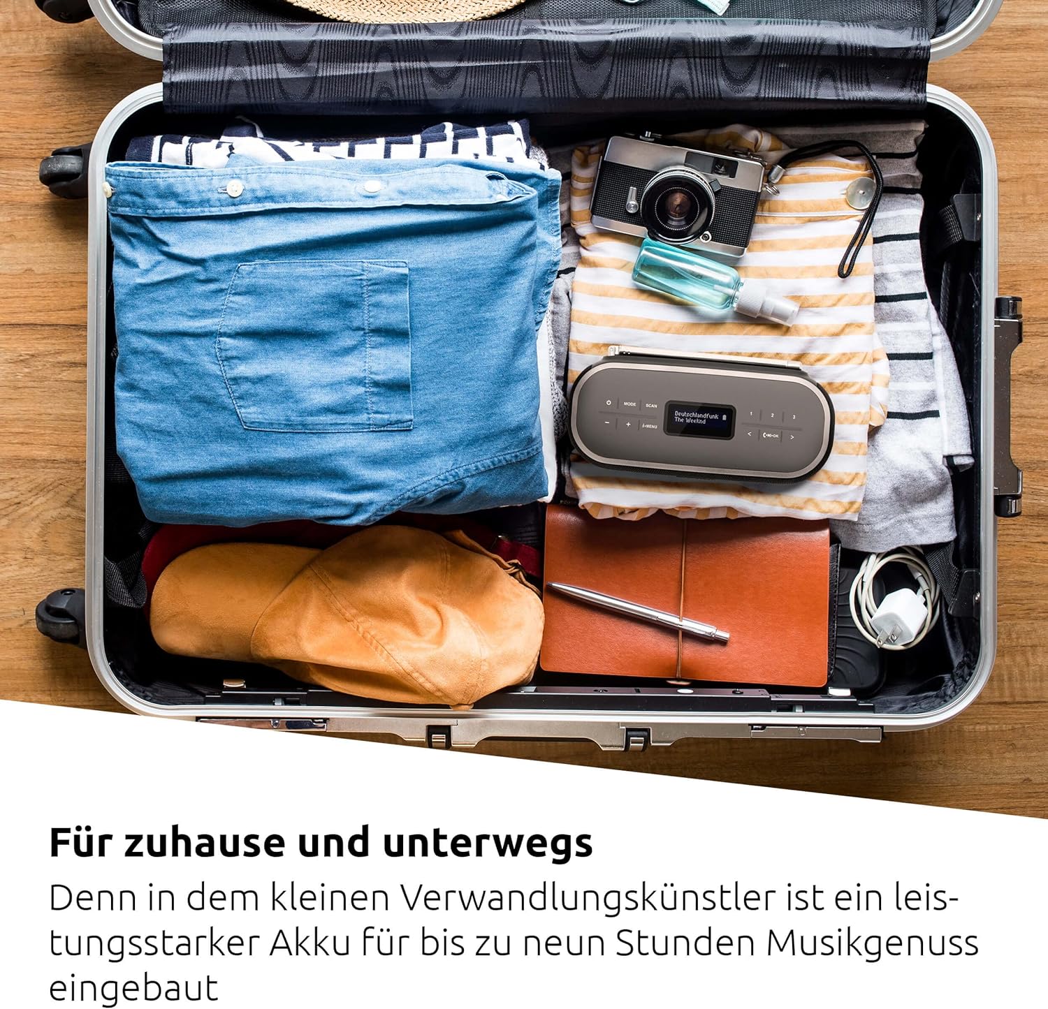 - Portables Kofferradio: Mit einem leistungsstarken Akku für bis zu neun Stunden Laufzeit ist die Box der ideale Begleiter für Outdoor Aktivitäten oder auf Reisen