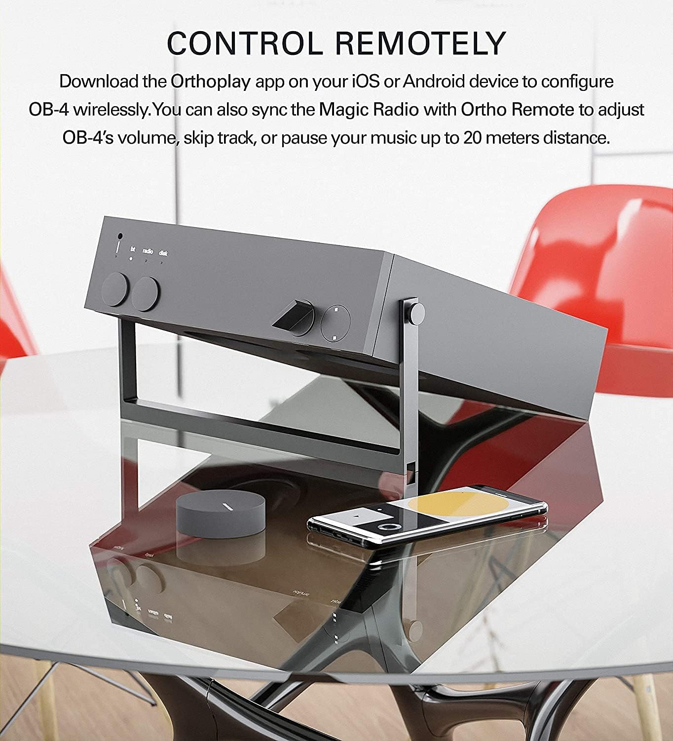 - Vielseitige Anschlussmöglichkeiten: Zusätzlich zum FM-Radio und Line-Eingang (Aux) unterstützt der OB-4 sowohl High-Definition kabelloses Bluetooth als auch BLE (Bluetooth Low Energy) Ausserdem können Sie mit der Ortho-Fernbedienung kabellos die