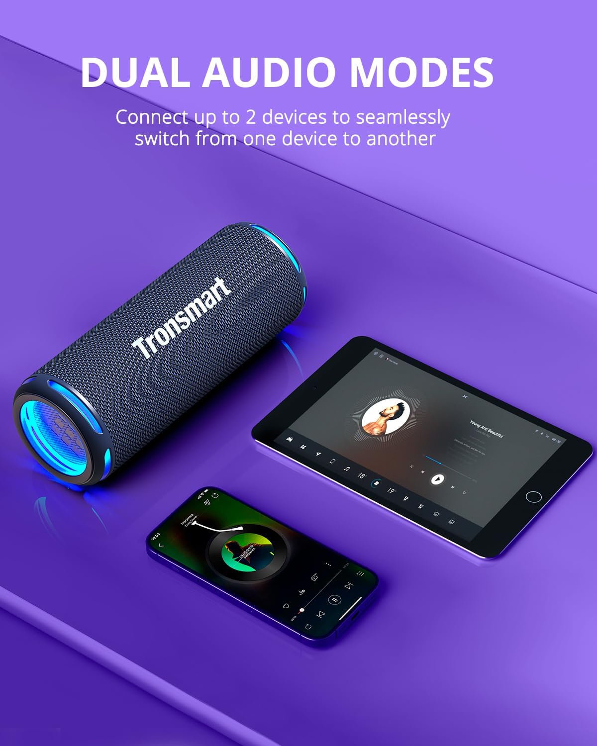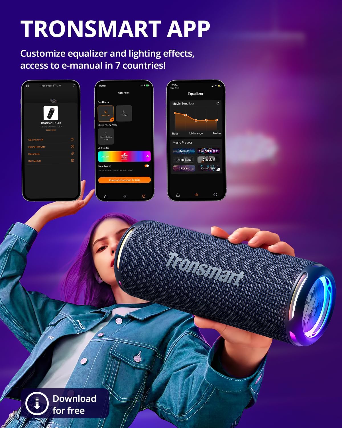 - [ Subbass und App Control] Der T7 Lite ist mit einem 24 W Vollfrequenz und einem Vibrator aus Aluminiumlegierung ausgestattet, um Ihnen einen kraftvollen und satten HiFi-Sound zu bieten. Unterstützt benutzerdefinierte eq und Lichtwechsel in der App