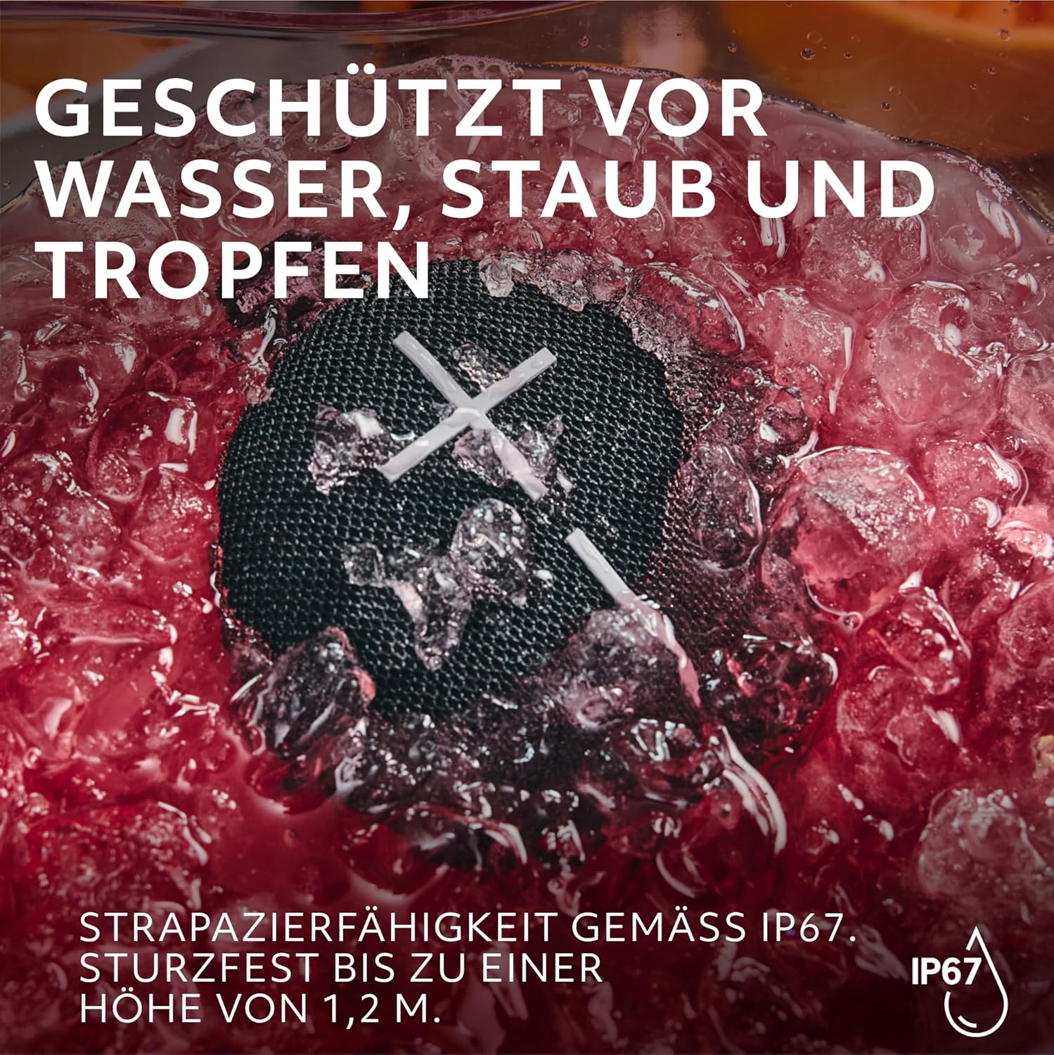 - Wasserdicht und staubdicht: Dieser IP67-zertifizierte, wasserdichte Lautsprecher kann 30 Minuten lang in 1 m tiefes Wasser getaucht werden und ist ausserdem vor Staub geschützt – ideal für den Pool, den Strand oder die Dusche