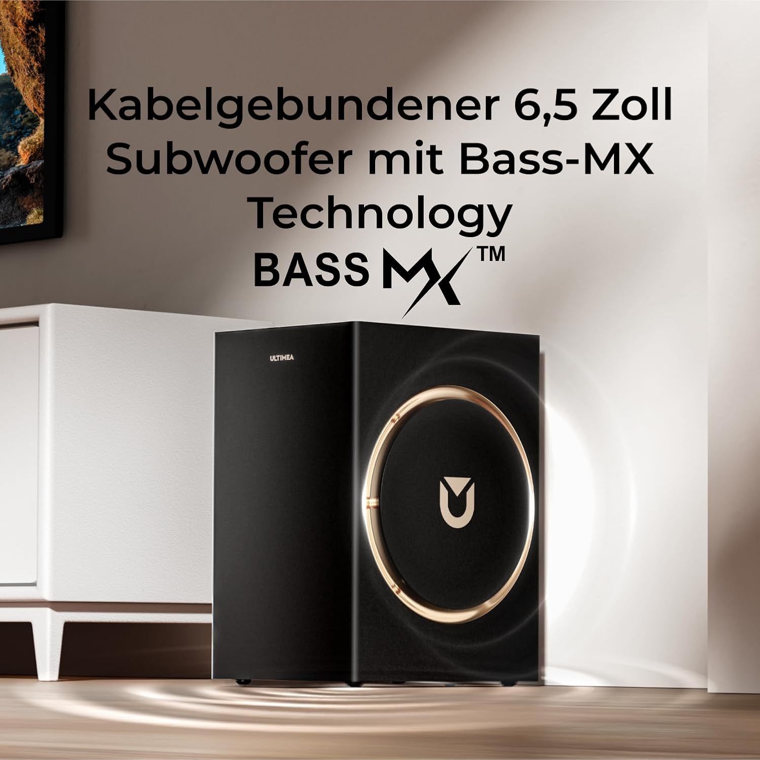 - BassMX Technologie: Der verbesserte 6.5-Zoll subwoofer verfügt über eine grössere 25mm Schwingspule, einen 18mm Hub, und ein erweiteres 7.2L Holzgehäuse—und liefert kraftvollere und resontantere tiefe Frequenzen. Die erweitere Basswiedergabe bis