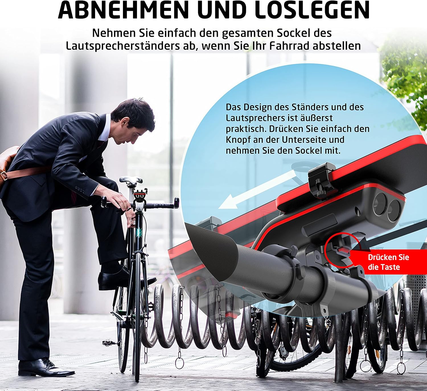 - 【Fahrrad Telefonhalterung + Abnehmbarer Lautsprecherfuss】 Der Klemmmechanismus mit dem praktischen Patent sorgt dafür, dass Ihr Telefon sehr stabil und sicher ist. Halter einstellbare Funktion unterstützt die meisten Telefone für 3,5 bis 7 Zoll,