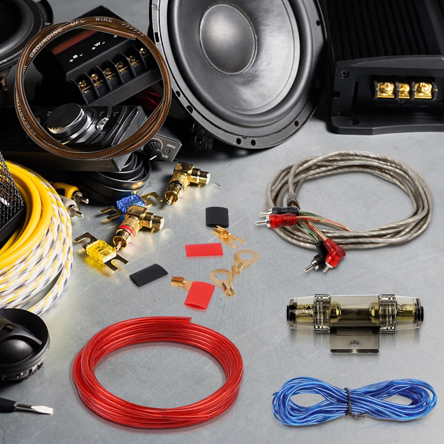 - Protection functions: high-quality car audio cable ensures maximum signal transmission. Comes with a fuse kit to protect your audio system from damage caused by overcurrent.