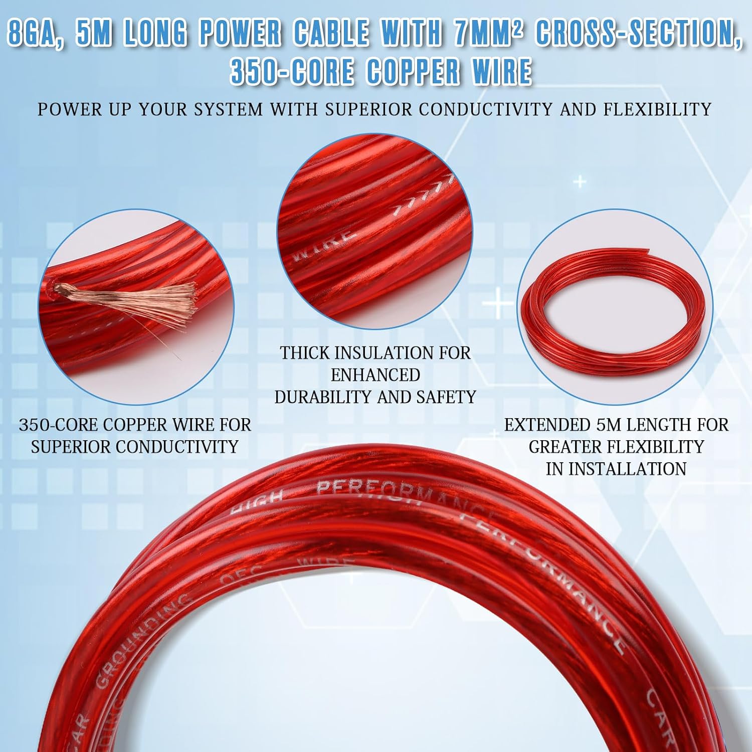 - Packing list: The complete set includes 1 x 5 m power cable, 1 x 5 m audio cable, 1 x 5 m control cable, 1 x 0.5 m grounding cable, 1 fuse, 4 cable lugs, 4 x heat shrink tubing, no preparation required other parts, in sufficient quantity for your needs.