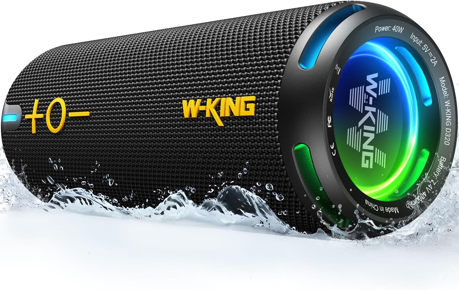 - BLUETOOTH 5.3 & 80 W DOPPELTER SPAss & RGB ATMOSPHÄRENLICHT & 24H WIEDERGABEZEIT: Geniessen Sie mit der neuesten Bluetooth 5.3-Technologie eine stabile, hochwertige drahtlose Audioübertragung. Koppeln Sie zwei W-KING D320 Bluetooth-Lautsprecher, um ein