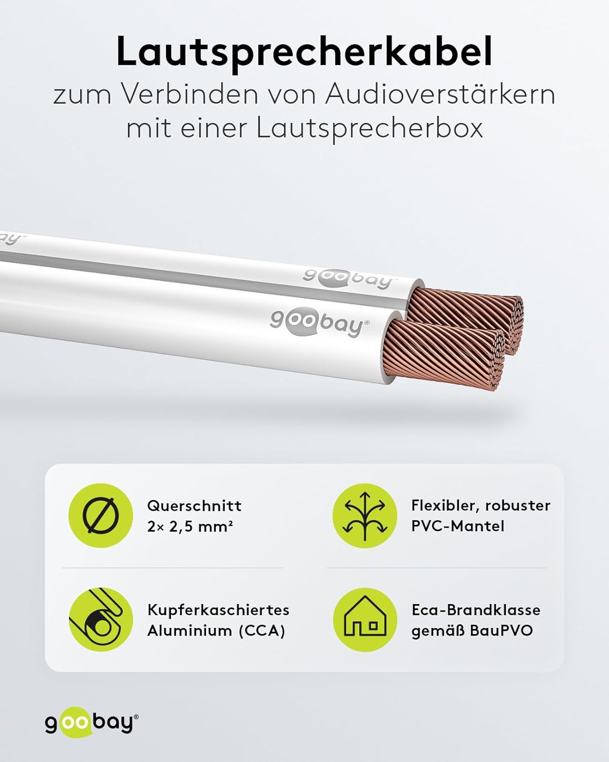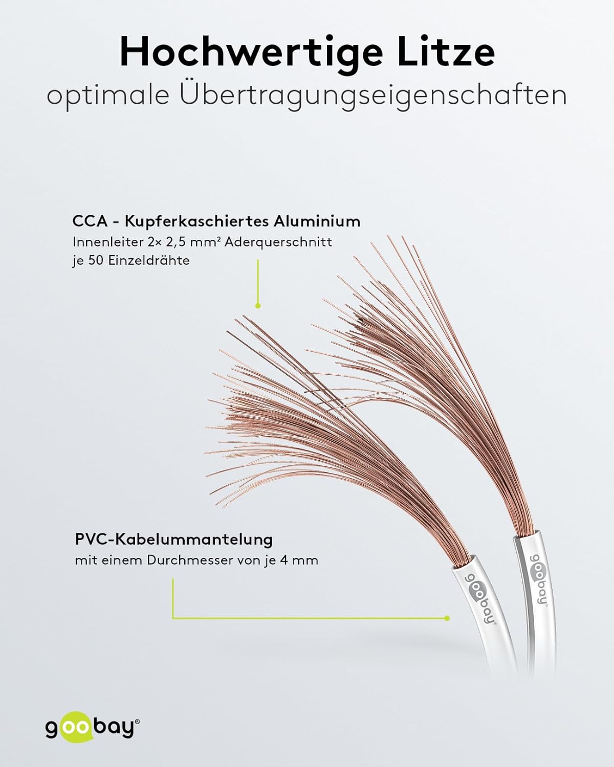 - Lautsprecher Kabel mit hochwertiger CCA Litze für hervorragenden Sound; Litzenkabel mit 2x 2,5 mm² Ader Querschnitt ; 2x50 / 0,25mm (4,0 x 8,0mm OD)