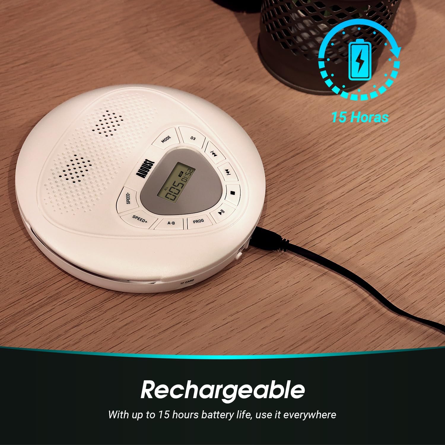 - 8H CD- ODER 15H MP3 WIEDERGABE - 1400mAh wiederaufladbarer Akku mit USB-C Ladekabel, an jedem 5V USB-Ladeanschluss aufladbar. Das Aufladen über den USB-Anschluss in Autos oder LKWs macht ihn zum perfekten CD-Spieler für unterwegs. Passen Sie die