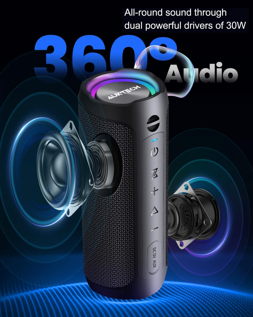 AUKTECH 30W Bluetooth Lautsprecher, kraftvoller Bass, IPX7 wasserdichte Musikbox, 24 Stunden Akku, L