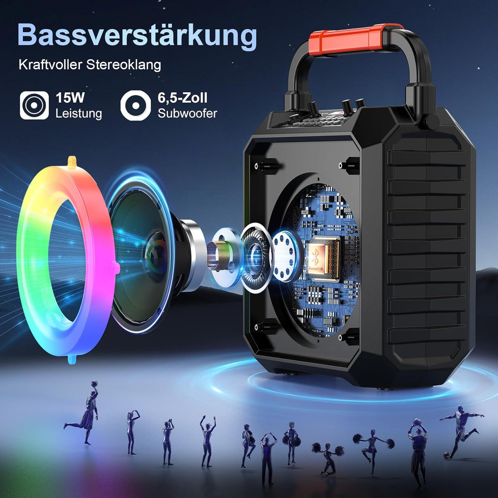JAUYXIAN Karaoke Machine mit 2 drahtlosen Mikrofones, Tragbaren Bluetooth Lautsprecher mit RGB-Licht