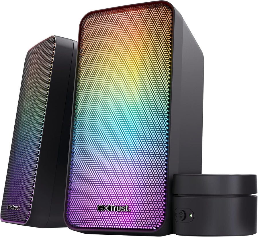 Trust Gaming GXT 611 Wezz 2.0 PC Lautsprecher mit RGB LED-Beleuchtung, 12 W (6 W RMS), 3,5 mm AUX Kl