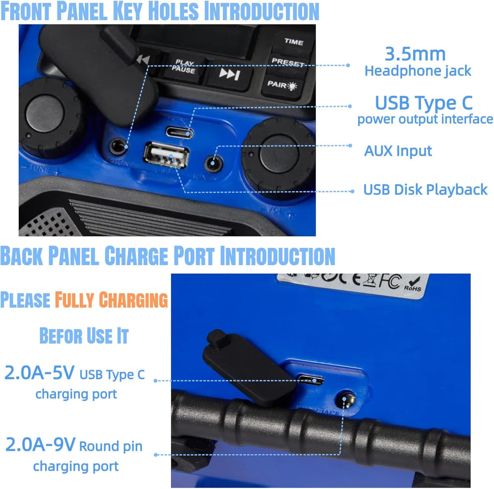 Bingxue FM-Radio-Empfänger, USB-Bluetooth-Lautsprecher mit Uhr-Alarm/LED-Lichtern, tragbar, Antikoll