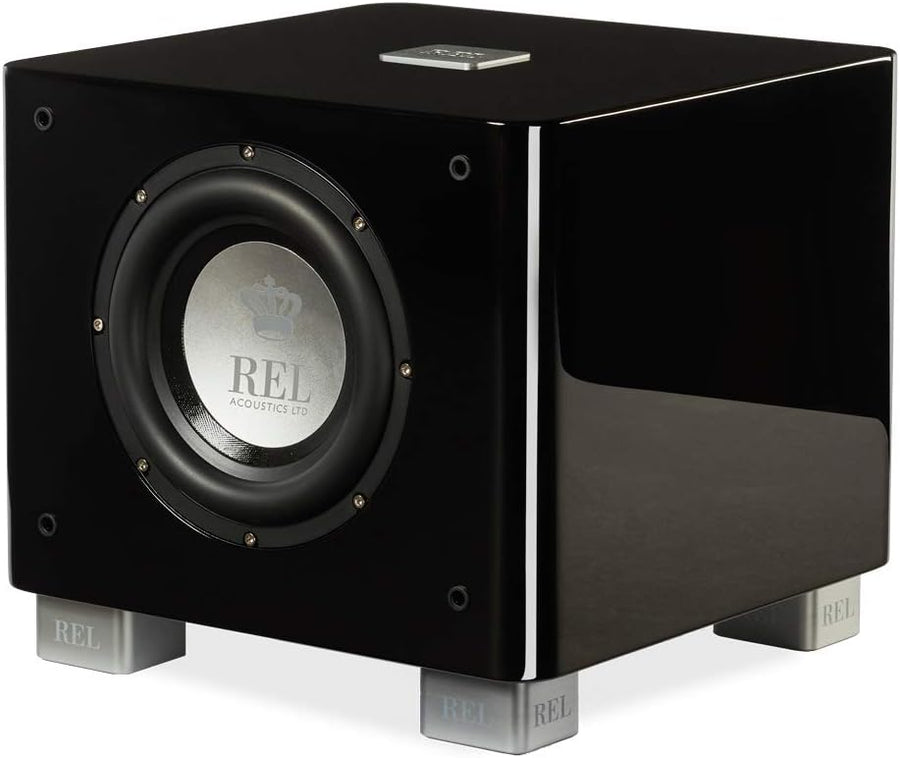 REL Acoustics T/7x Subwoofer, 8 Zoll Front-Firing Driver, Arrow™ Wireless Port, Hochglanz-Schwarz
