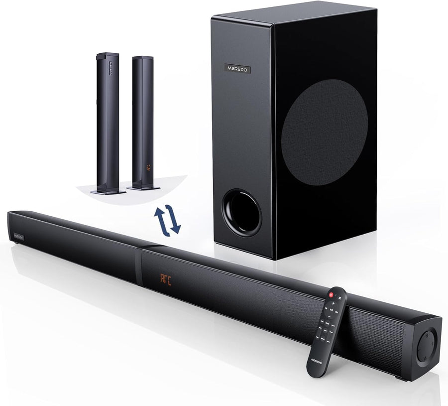 MEREDO Soundbar für TV Geräte mit Subwoofer PC-Gaming 2.1 Kanal Abnehmbare 2 in 1 Computer Lautsprec
