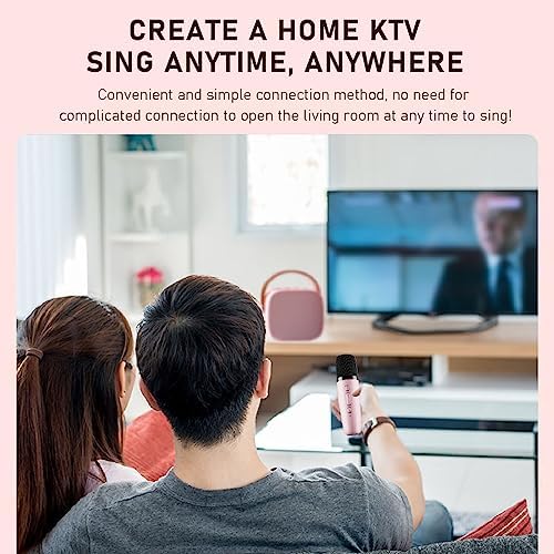 Karaoke Maschinen Set, Tragbarer Stereo Bluetooth Lautsprecher mit 2 Kabellosen Mikrofonen für Kinde