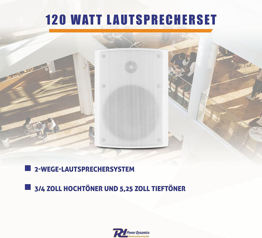 Power Dynamics BGO50, Wand Lautsprecher Boxen Set Wandmontage, 240 Watt, 2-Wege In- und Outdoor Wand