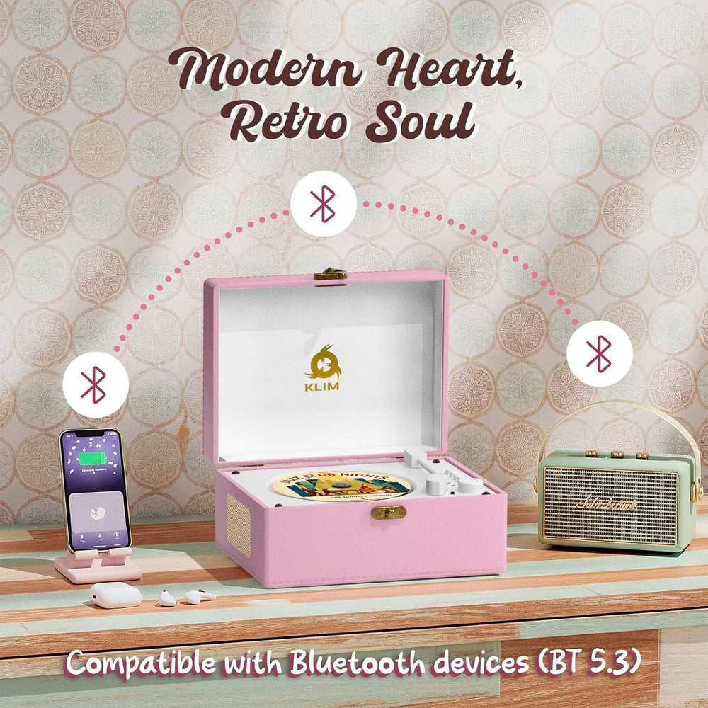 KLIM Retro CD Player – Tragbarer CD-Player mit Lautsprecher, Bluetooth-Empfänger, AUX, USB, Akku, Re