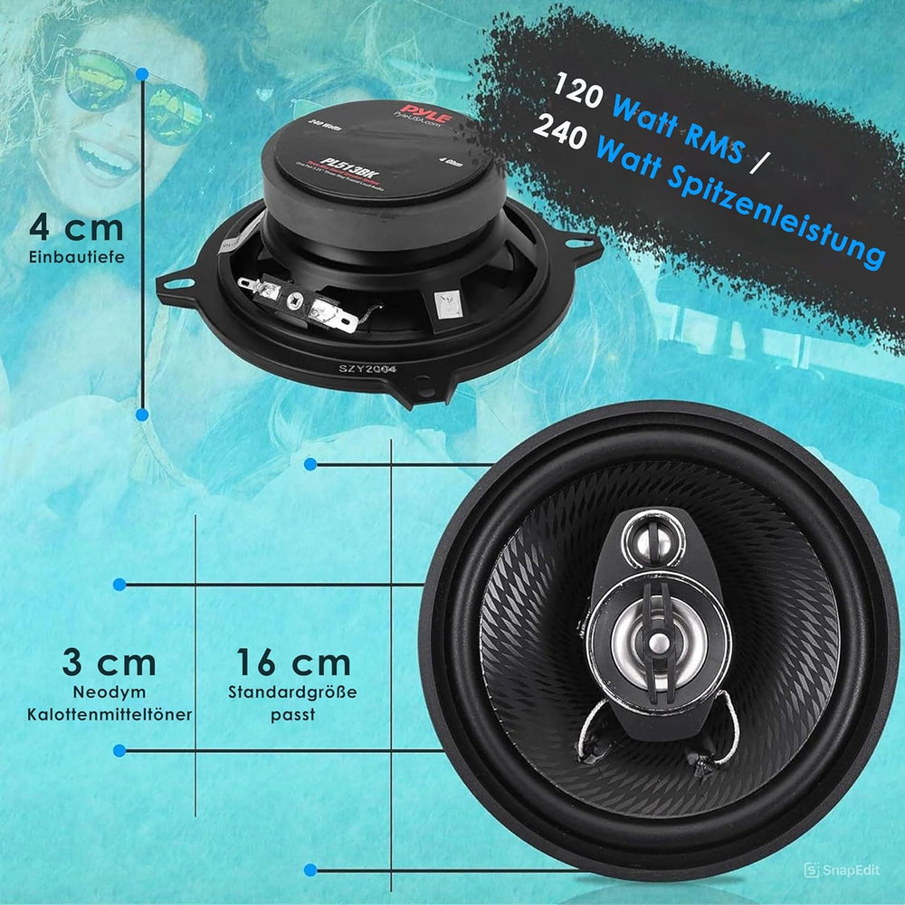 PNI Koaxial-Lautsprecher HiFi500, 100 W, 12,7 cm, 3-Wege, 2er-Set