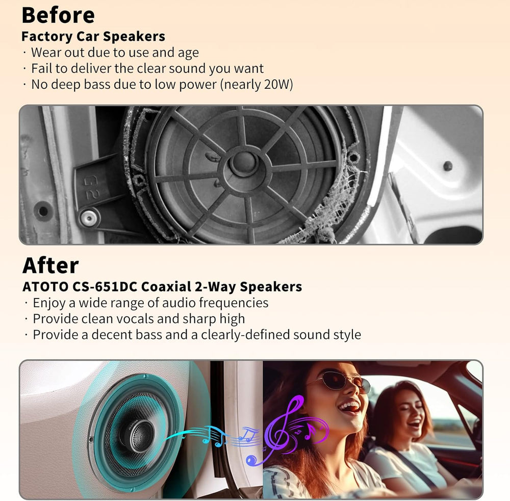ATOTO CS-651DC 16,5cm 2-Wege Auto Koaxial Lautsprecher Set - 230W Max/60W RMS, 4 Ohm Raumklang-Autol