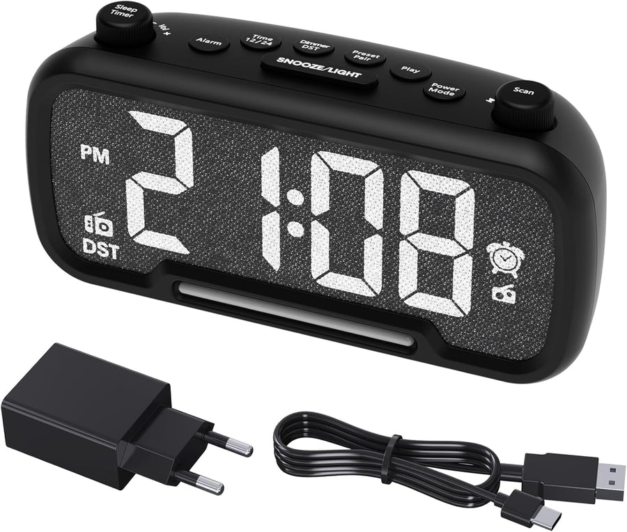Radiowecker mit Bluetooth-Lautsprecher, Digitaler Wecker mit Typ-C Ladeanschluss, Nachtlicht, Snooze