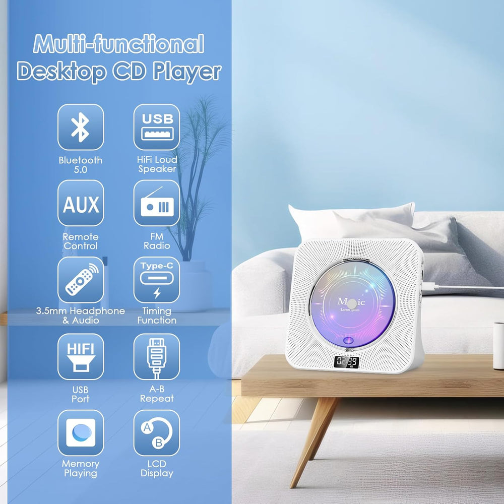 KOVCDVI CD Player mit Lautsprecher CD Player Bluetooth 5.0 CD-Player Desktop mit Fernbedienung Staub