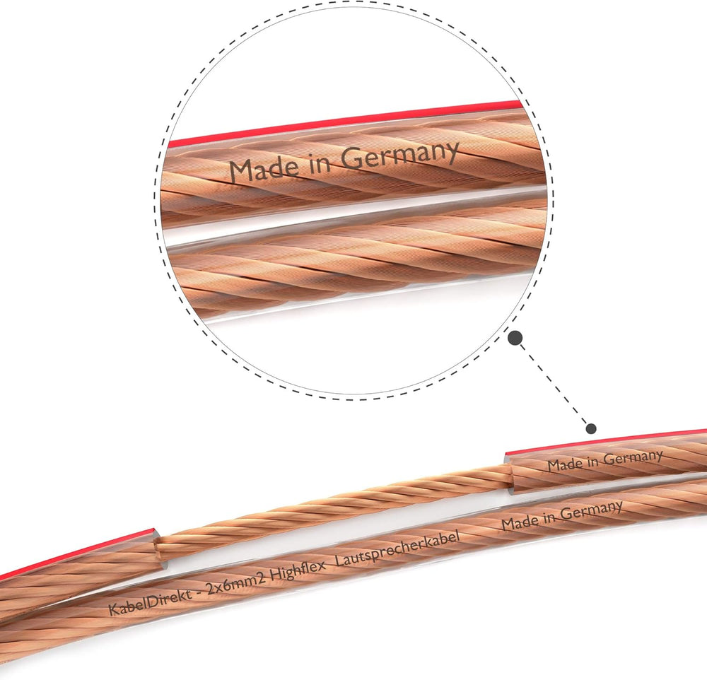 KabelDirekt – Lautsprecherkabel – Made in Germany – aus reinem Kupfer – 15m (2x6mm² HiFi Audio Boxen