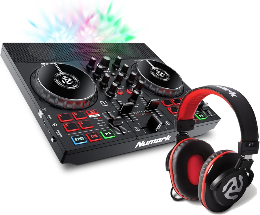 Numark Party Paket - Party Mix Live DJ Controller Mischpult mit eingebauten Lautsprechern, Lichtshow