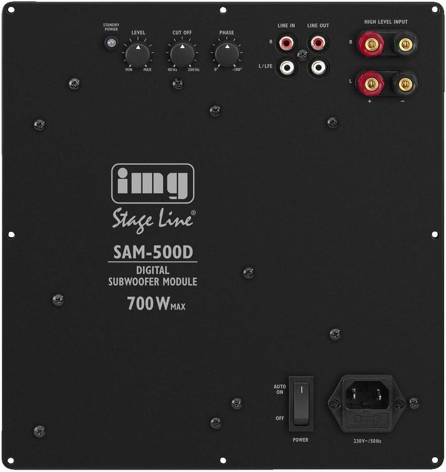 MONACOR SAM-500D Subwoofer Aktiv-Modul mit 500 W und variablem Tiefpass, Tieftöner mit High-Level Ei