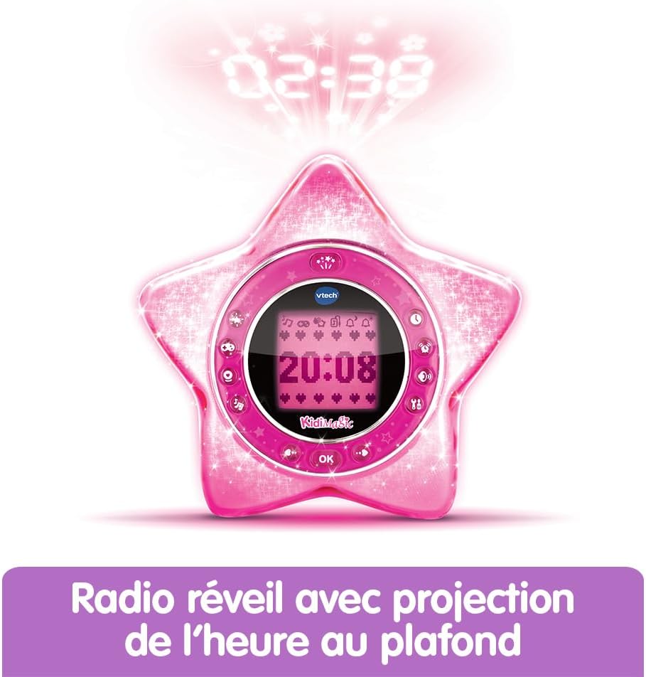 VTech - KidiMagic StarLight Rose — Interaktiver Kinderwecker, Radiowecker mit Lautsprecher und animi