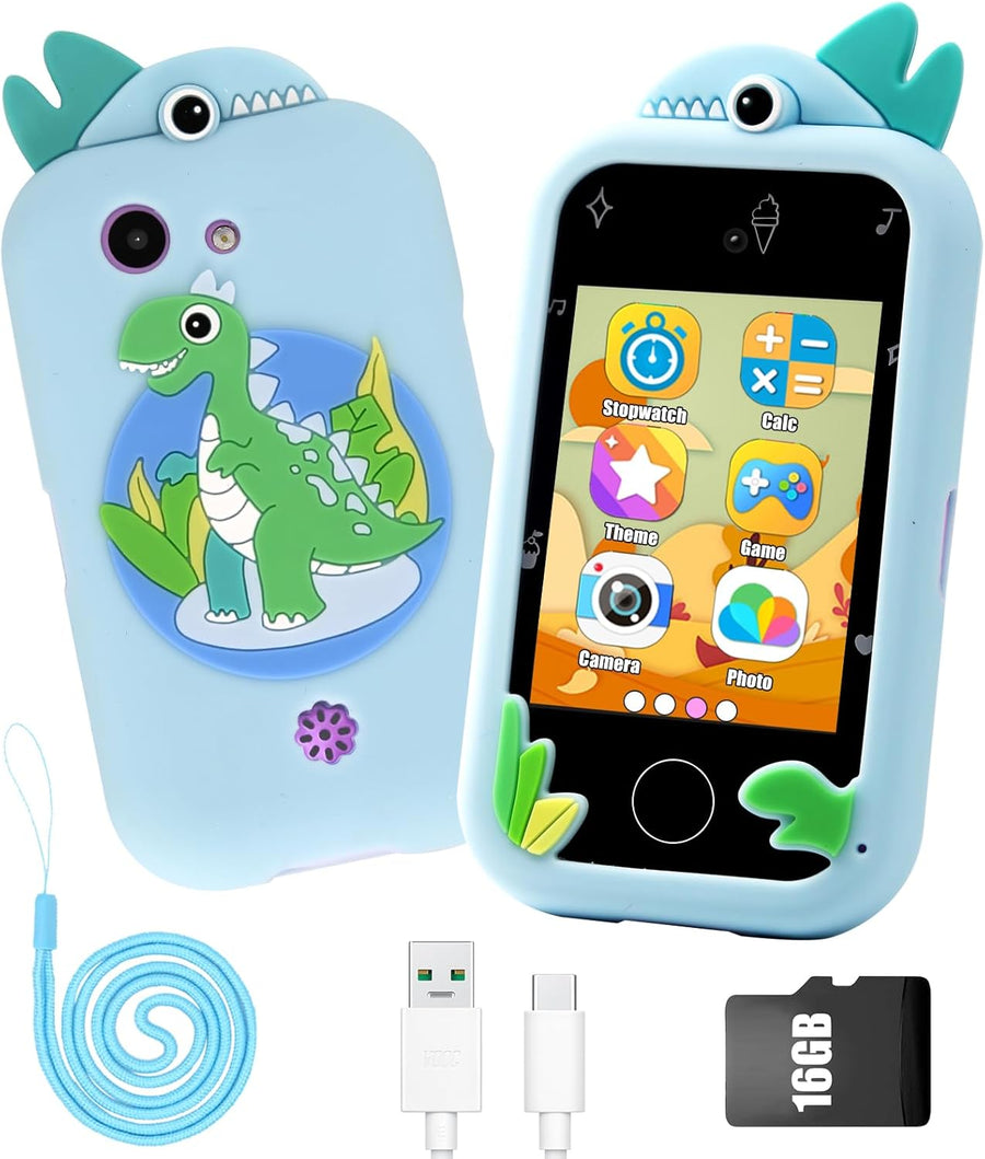 - ALL-IN-ONE-SPIELZEUGTELEFON FÜR KINDER: Eine Dinosaurier-Kinderkamera mit 2,8-Zoll-Touchscreen und einer 16-Gramm-Speicherkarte. Es hat eine eingebaute Kamera, 14 Spiele, einen Musikplayer und verfügt über nützliche Gadgets, die Kinder brauchen, wie