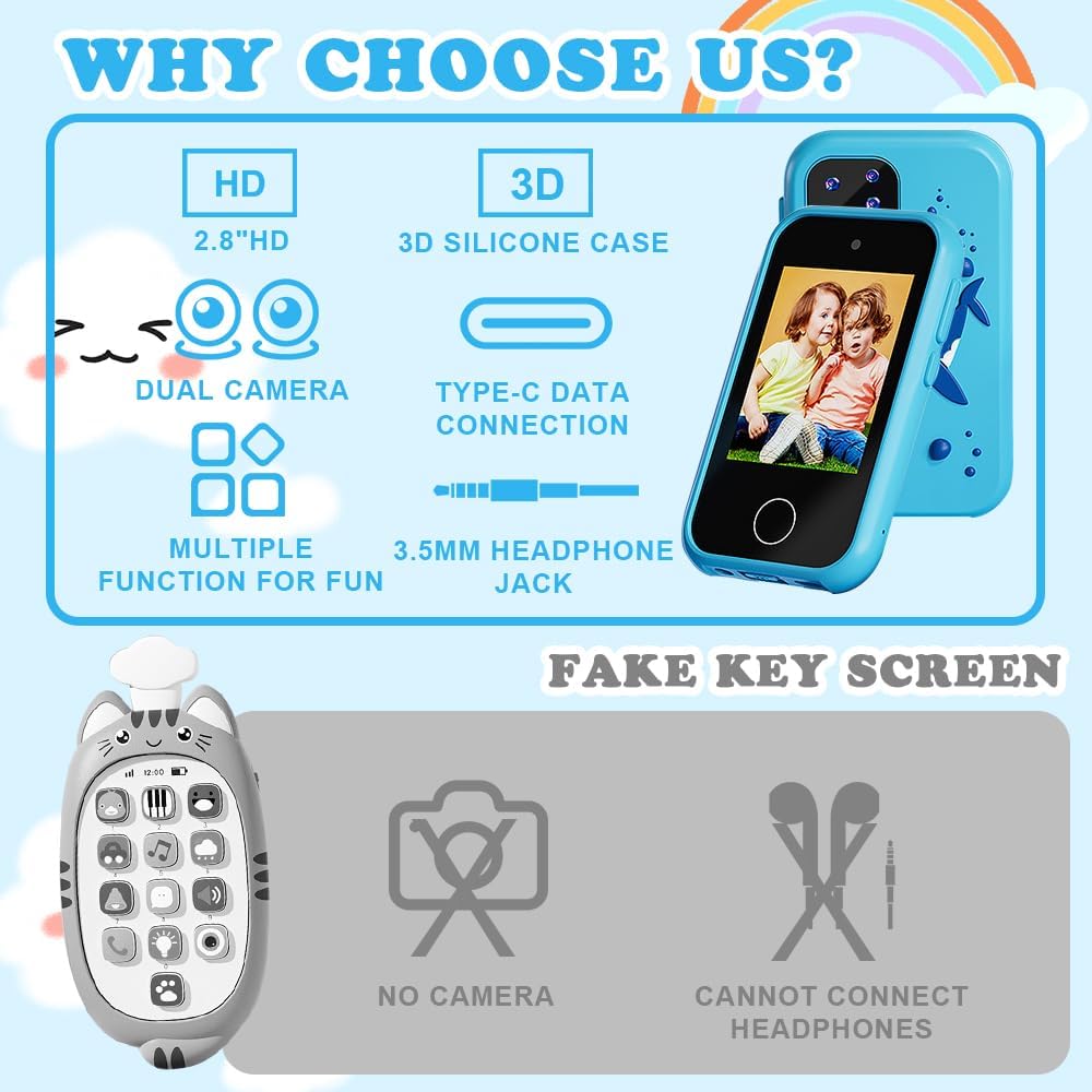 - 【2.8 Zoll Touchable Screen】Dieses Smartphone für Kinder verfügt über einen 2 Megapixel IPS-Touchscreen mit einstellbarer Helligkeit, um die Augen Ihres Kindes zu schützen. Mit USB-Typ-C-Ladung kann das Gerät in 2-3 Stunden vollständig