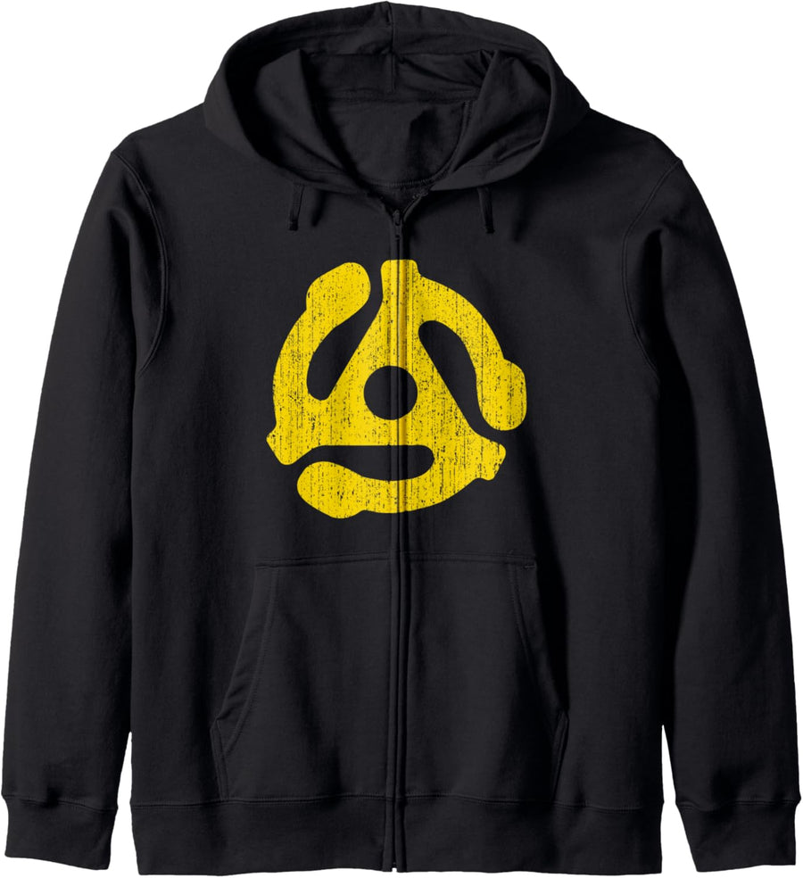 PRODUKTBESCHREIBUNGEN Dieses Design hat eine Grafik eines 45 U/min Adapters für Schallplatten auf einem Plattenspieler. Es ist ein tolles Geschenk für Freunde, Familie, Mutter, Vater, Bruder, Schwester, Tante, Onkel und sogar Cousins, die Vintage-Musik lieben. Mehr
