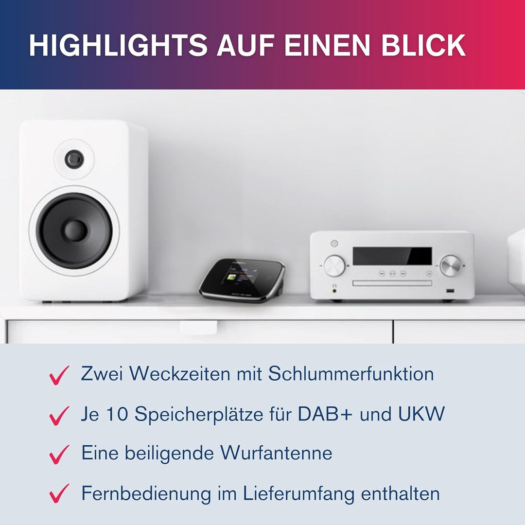 - Über 290 deutschlandweite und regionale Radiosender in höchster Qualität sind empfangbar: kristallklar ohne Rauschen. Sie können unbekannte Sender jeden Genres entdecken und bis zu 10 Favoriten speichern.